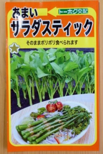 あれは確か、昨年の11月頃だったと思います。郊外にある大型ホームセンターに寄った際に、変な種を発見したのです。それが画像の「あまいサラダスティック」です。調理後の写真を見るとアスパラガスっぽいような、っぽくないような…一応、種袋には『ナバナ』…