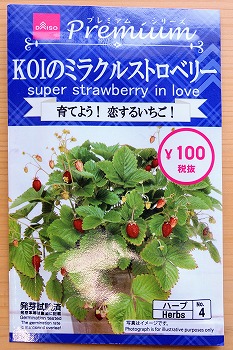 種袋に書いてある名前が、あまりにも気になって買ってしまいました。その名も「KOIのミラクルストロベリー」です。パッケージのデザインから、KOI = 恋 だとは思いますが、なぜローマ字表記なのか?そしてミラクルストロベリーとは一体…ちなみに日本語の下に英語表記も書いてあり、それは「super strawberry in love」です。直訳すると、『恋する素晴らしい苺』になるのでしょうか。ミラクル(miracle)の単語は何処へ…