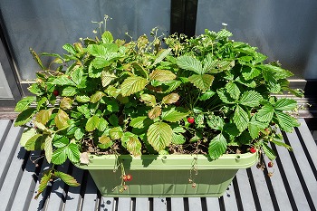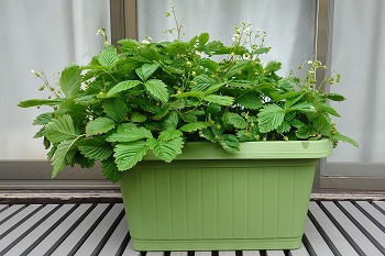 プランターの近くに寄ると、ほのかにイチゴの香りがして良いです。花の数は少し増えたように感じます。