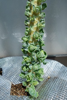 最下段の芽は結球が解除されて、葉が開いてしまいました。このような芽はハサミで切り、他に栄養を回します。