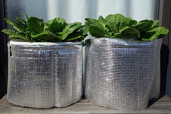 ちなみに培地からの水分蒸発を少なくするために、ドーナツ状に切ったアルミ蒸着保温シートを取り付けました。このお陰で水やりの頻度が少し減りました。このシートはポリポットで育苗している間は付けたままにしておきます。